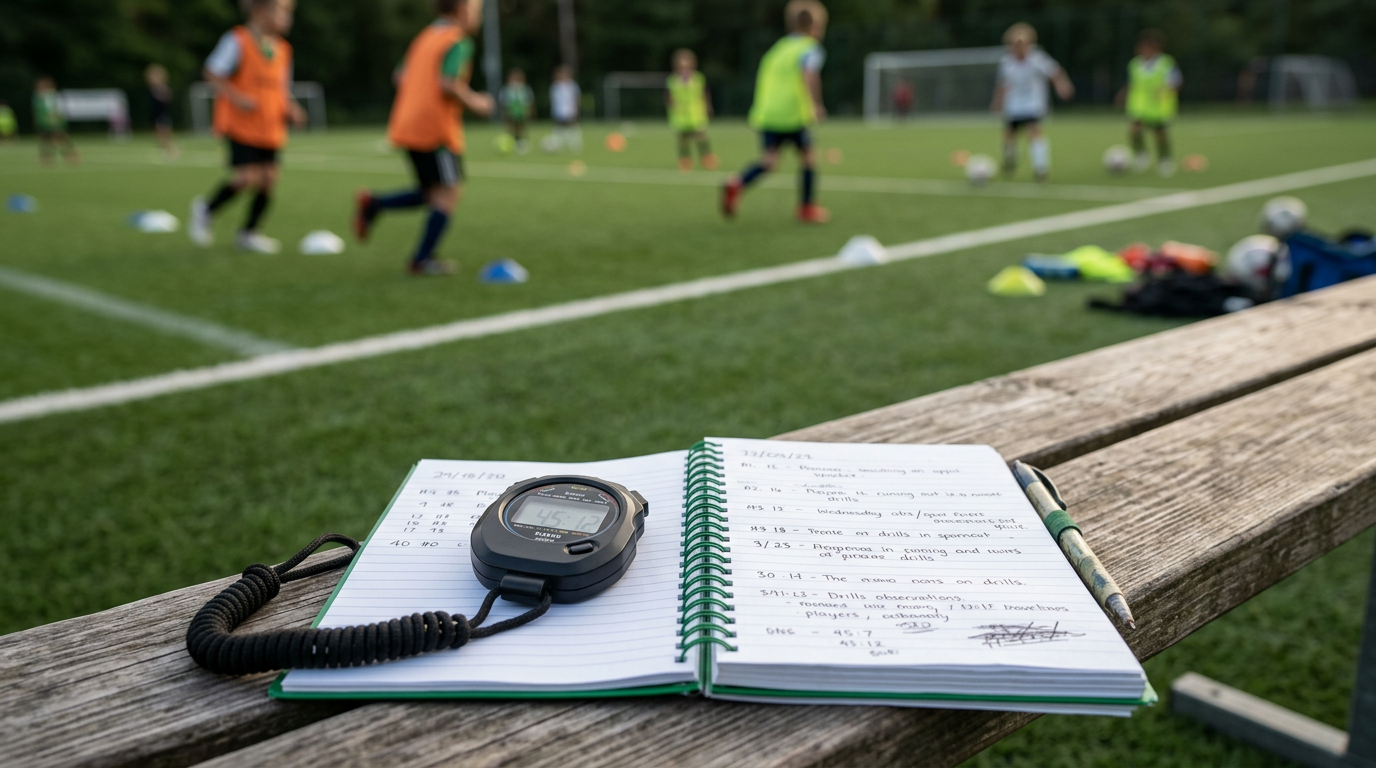 Coaches can assess player progress without formal testing by tracking three things: training consistency (how often and how seriously the player practices), observable game behavior changes (what the player attempts and executes in matches compared to last month), and skill progression data from training platforms. Formal fitness tests and timed drills measure performance on a given day. They do not measure development over time. The most useful assessment methods for youth coaches are the ones embedded in daily coaching, not added on top of it.